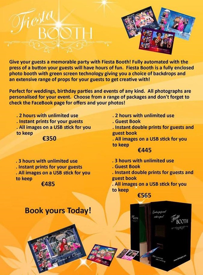 If you are looking for a photo booth for your wedding in Marbella, or at most venues throughout the Malaga province, Fiesta Booth is just perfect for the job! Designed and created by professional photographer Isabel Benchetrit, fiesta booth is a cut above the rest when it comes to photo quality and technology! Fiesta booth is available as either a black, or white booth and fancy dress items are provided for the ultimate in crazy photos! A reliable and highly recommended photo booth services which has become very popular for weddings here in Spain.